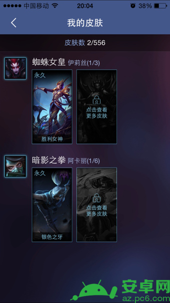 3、如果你点击的是【拥有的皮肤】,它便会直接跳到英雄皮肤界面来,点击你想查看的就好。