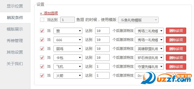 点击【添加选项】,并选择要展示的礼物,数量值以及展示模版。注意哦,可以添加多项哦,如图: