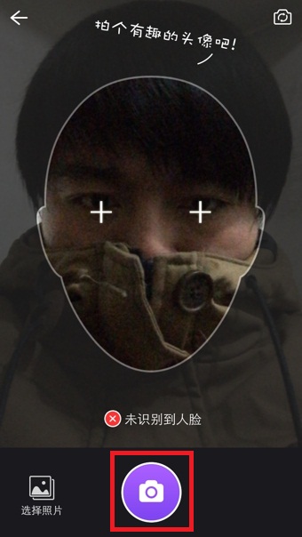 2、对准你的脸拍照就可以啦。额,小编因为长得太帅,为了避免太多人爱上我,还是在灰暗的灯光下带上面罩。
