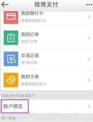 2、进入“微博支付”页面后,打开菜单“账户绑定”。