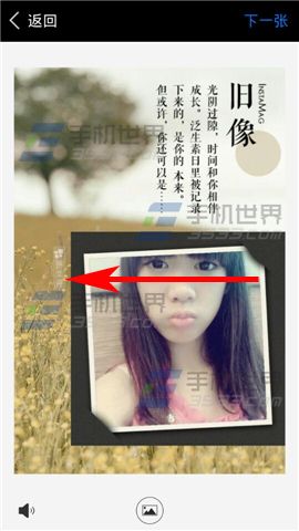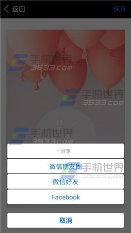 5)每一张都是这么添加图片的哦,翻到最后一页的时候,右上角的下一张按钮会变成【保存】,点击保存后,还可以分享到微信、FaceBook哦。(如下图)