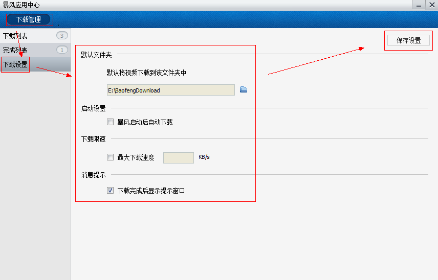 4、对于下载功能的设置,请您在下载管理界面的下载设置中进行调整。