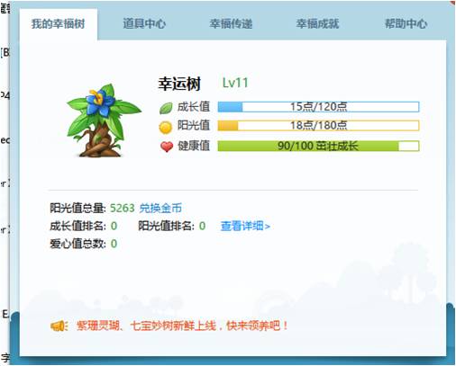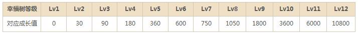 目前幸福树分为12个等级,成长值的多少会决定幸福树的等级。