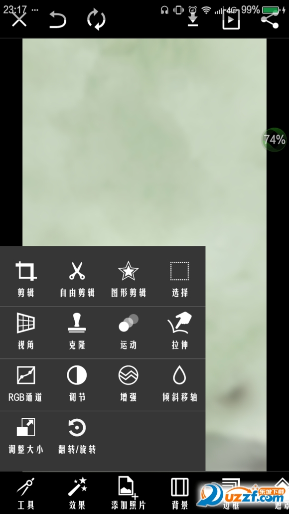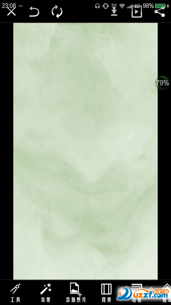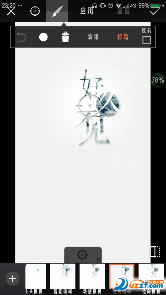 添加保存的溶色之后的“好久不见”,点击左上角(见P2)进入【效果】,选择【模糊】【变焦模糊】,光标如P3放置。