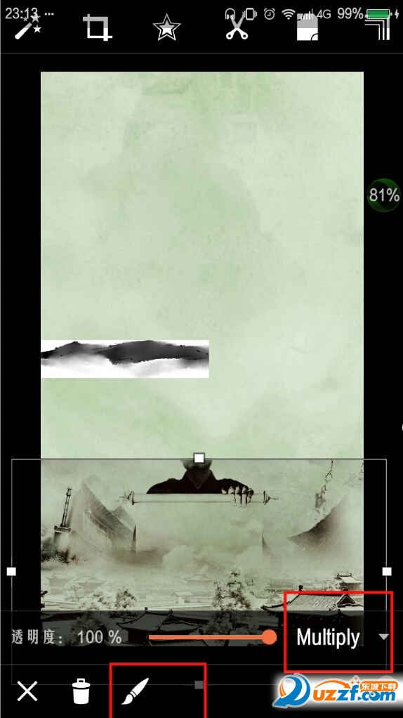 添加保存的黑色“好久不见”,模式用Multiply。