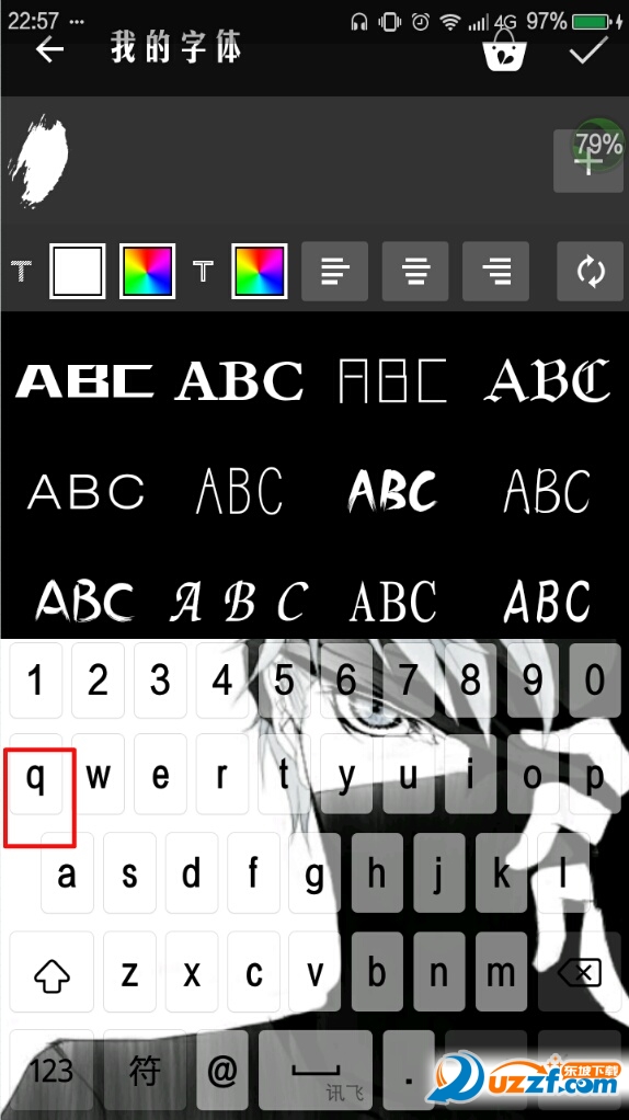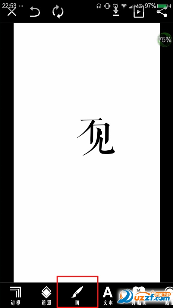 添加文本,选择笔刷(P1所示),键入英文小写字母q(P2所示)。