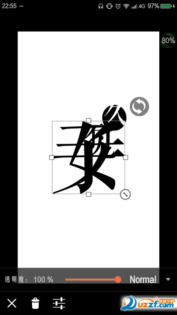 添加文本“久”(白色),如P4所示放置。