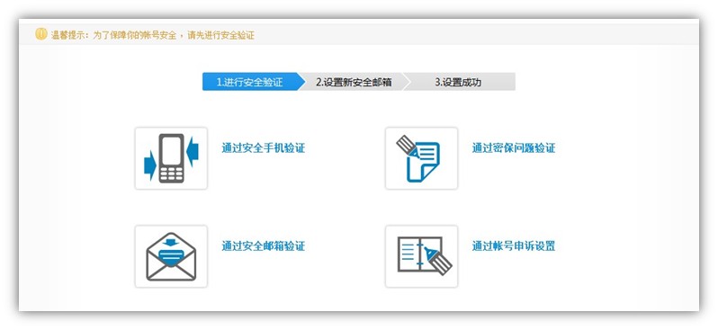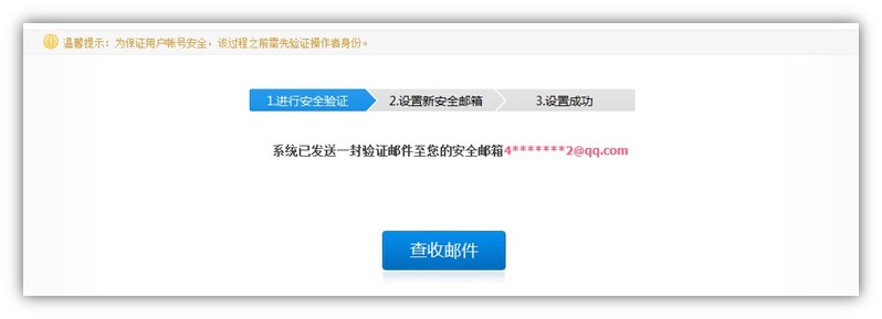 1、登陆安全中心——帐号保护——安全邮箱修改;