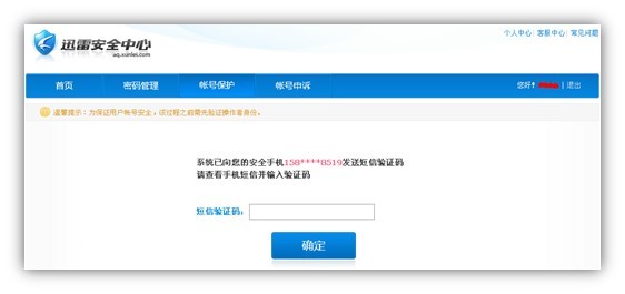 【2】通过绑定的安全手机进行修改:请输入安全手机接收到的验证码;