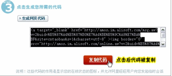 页面右侧可以看到“旺遍天下”生成代码的步骤,非常简单快捷。