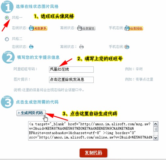 注意:头像可以由两种风格可随意选择,带“和我联系"和“只有旺旺头像”的: