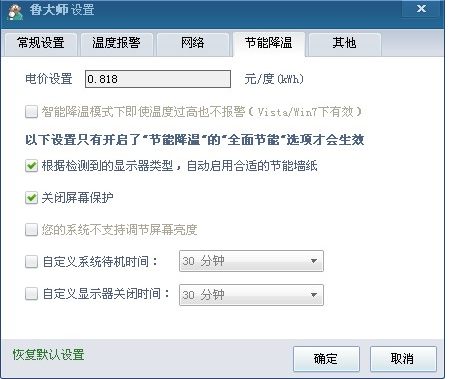 鲁大师设置电价的方法很简单,只要点击 “电价设置”按钮,然后填入电费价格即可。