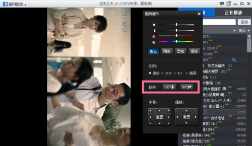 方法二、也可以通过“暴风转码”-“视频截取”-“画面翻转”,添加画面需要翻转的视频,选择需要输出的格式(如不需要更改格式,可选择同格式的输出)和分辨率,点击“开始”,再点击“画面翻转”,重新进行转码,转码完成之后的输出格式,画面将会被翻转。