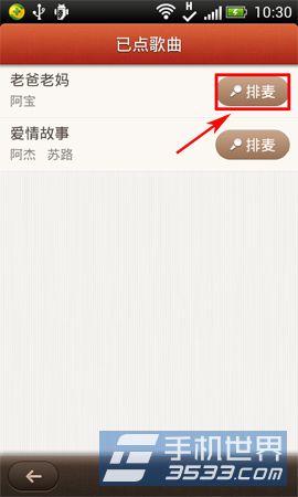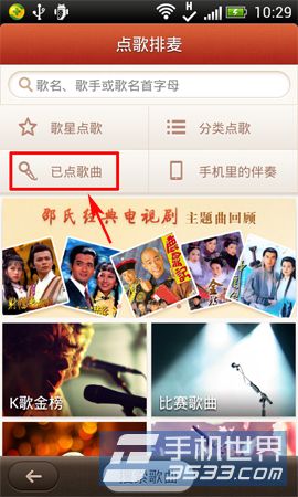 3)进入点歌排麦界面,点击“已点歌曲”按键,在进入已点歌曲界面后,按“排麦”按键。(如下图所示)