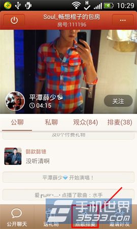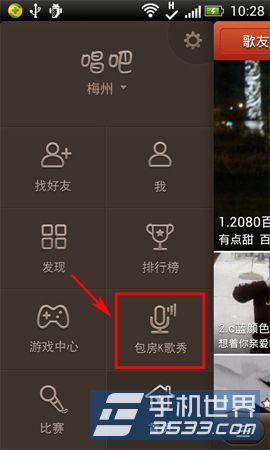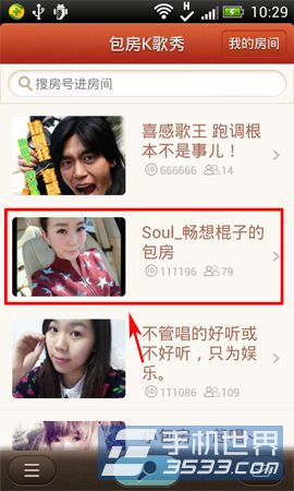 2)进入包房K歌界面,选择进入一个包房,然后在包房界面中点击“点歌排麦”按键。