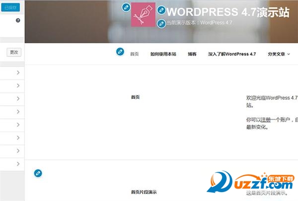 在自定义面板中对网站进行个性化定义的时候,在右侧的即时预览区域,你可以看到许多标记当前内容可编辑的图标。