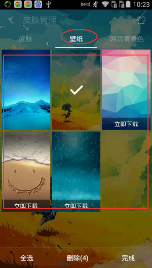 第三,长按后进入【皮肤管理】,这里有好多选择,【皮肤】、【壁纸】、【网页背景色】