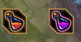 故名思义,红瓶加血,蓝瓶补蓝,紫瓶都补,前期当然一般都带红蓝,ADC(如寒冰、女枪)点回蓝之后可以不带蓝买眼带红,萎缩法师(如奶爸、火女)则可以少红多蓝,个别英雄只带红(微、战警),更有裸装大神,自信出门。