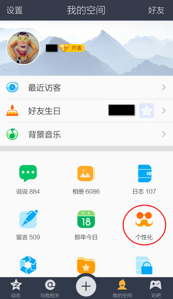1、打开QQ空间客户端,选择底栏【我的空间】