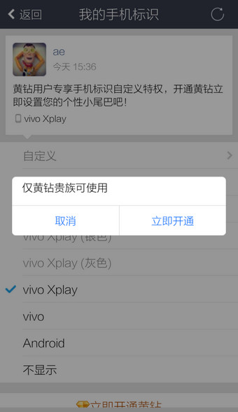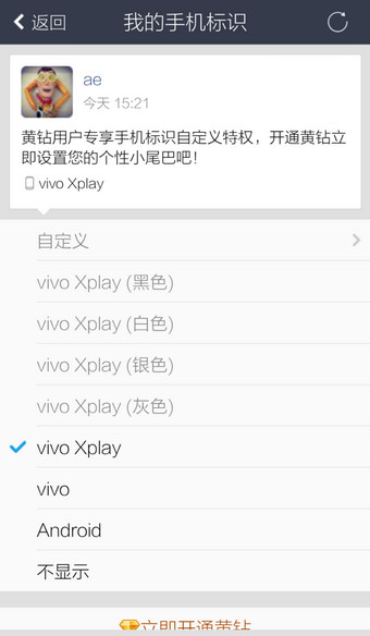 要想使用手机QQ发动态时显示手机型号,需配合QQ空间客户端使用。