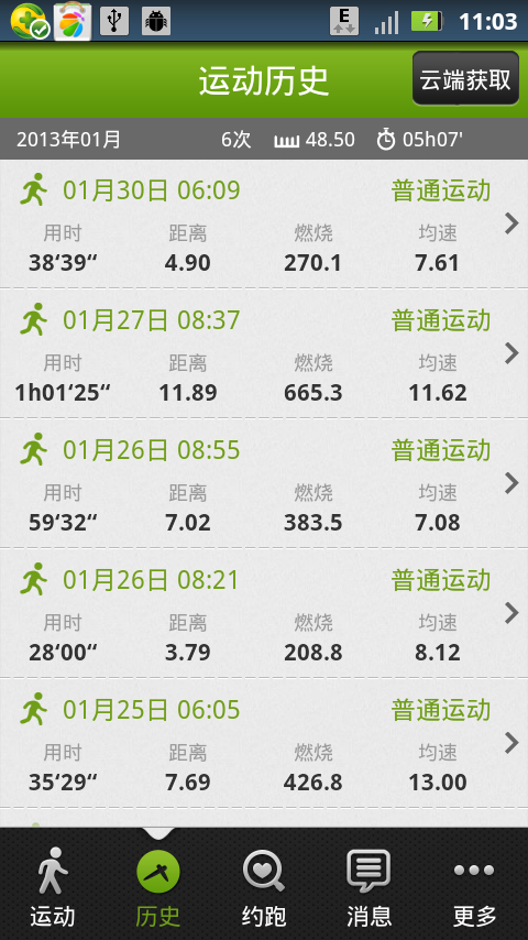 “历史”是你使用软件跑过的所有记录信息,可以点击它随时查看自己的训练记录