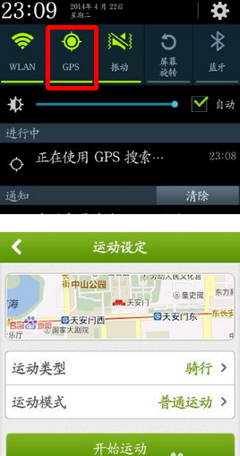 3、在运动设定下要打开GPS,快捷设置里GPS打开就行了。