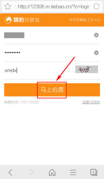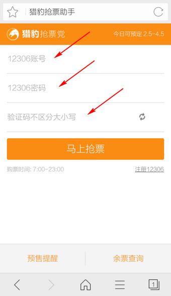 2.进入猎豹抢票党,输入你的12306账号密码及验证码