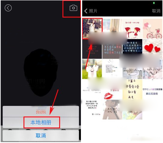 3、进入界面在右上方点击【本地相册】,进入相册选择照片点击一下。
