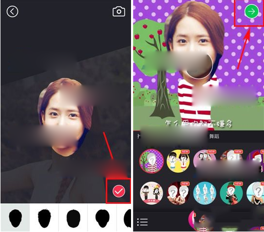 4、在界面进行对照片头像移动对准位置,然后点击【√】,进入界面即可看到头像变成自己的了,对准视频点击一下,便会弹出窗口点击【→】。