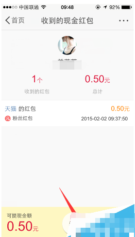 1、在大家抢到红包以后,点击右下角我收到的现金红包,如图;