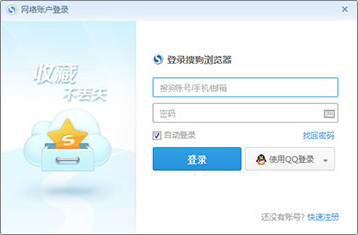 首先注册一个搜狗通行证账号(网络账户),然后用该账号登陆浏览器,您就可以使用网络收藏夹了。