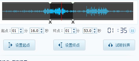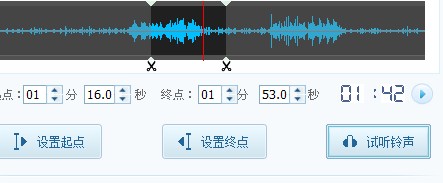 接着我们如果选定后起始点和终点后,想确定一下铃声时。我们可以点击最右边的播放小按钮或者是直接的点击试听铃声来核对我们所编辑的铃声