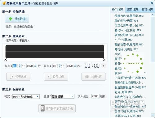 接着系统就会自动的弹出一个附属的酷我铃声编辑工具窗口了,里面有各个编辑工具,等一下我们就有运用这一个铃声编辑器来编辑所属我们的独特铃声了