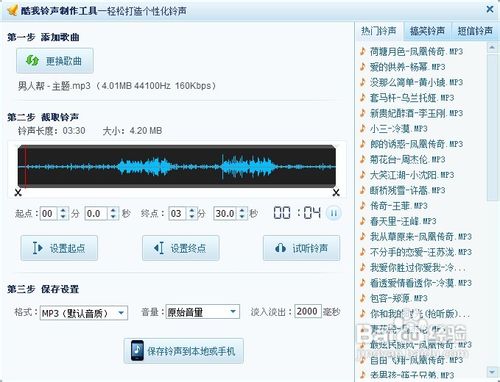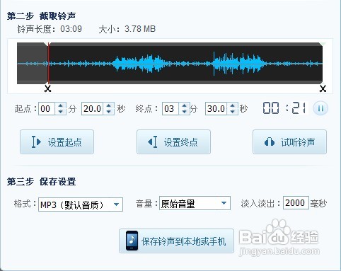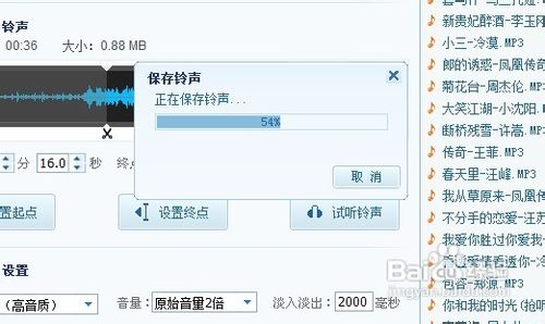 之后在不断的调整下,如果你已经对铃声很满意了的话,我们就进入最后的一个步骤,也就是另存为铃声设置