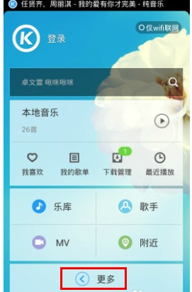 3、在手机酷狗音乐上点击主界面,在主界面点击"更多"