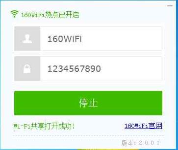 至此,电脑的设置更改完毕,重新开启160WiFi,Wi-Fi共享打开成功!