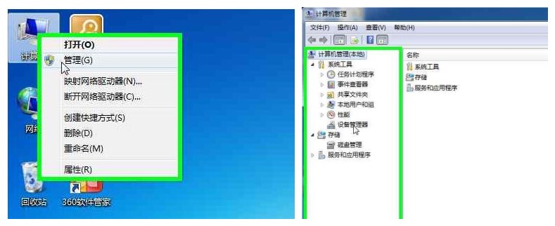 问题步骤三:重新安装无线网卡驱动。鼠标右击“计算机”,打开计算机的管理菜单,找到左边菜单里面的“设备管理器”,打开。