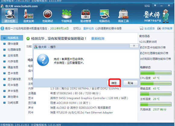 首先鲁大师的保存截屏功能可以自动截取鲁大师软件界面图。您可以通过在鲁大师的硬件检测、温度监测、性能测试、节能省电界面点击“保存截屏”链接来使用。
