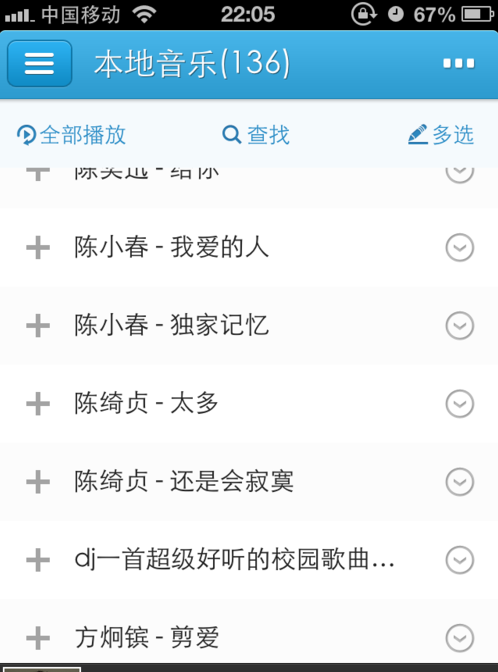 进入到本地音乐中,就可以看到你手机上面的所有音乐了,然后找到你想要分享的音乐,比如下图,我就选择了一首“独家记忆”点击播放