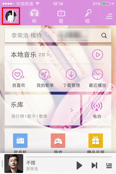 1、首先在手机上打开酷狗音乐,进入到酷狗音乐主界面,在其左上角找到“头像”标志,点击一下,如下图所示: