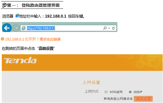 你需要登录到路由器管理界面来进行设置,此时,你需要有线(无线)连接到路由器,在浏览器中的地址栏中输入192.168.0.1来打开管理界面。