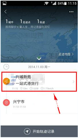 3、我们可以看到自己刚刚出行的轨迹数据,点击右上角【关闭】返回【我的足迹】页面,刚才的出行轨迹已经记录起来了。)