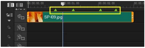 第二步:将游标拖曳到您要添加章节的地方,然后按一下时间轴尺规下方的列。注意将会出现一个绿色箭头图示,指出影片中的章节点。