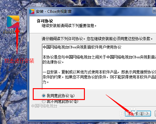 下载完成后双击安装文件,进行安装。点击“同意协议”,然后点“下一步”。