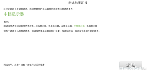 10、OK,到这一步,测试便算是完成,这里显示的是我的显示器质量,当然,你的应该比我的更高