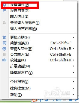 1搜狗输入法安装了截图的功能后可以自动设置快捷键。点输入法条右边的设置,同上所示点击设置属性。