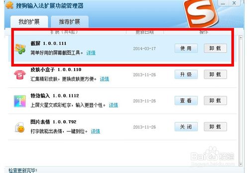 4安装完成后可以看到在我的扩展下面有了截屏这个选项。此时点击使用可以直接进行截图。
