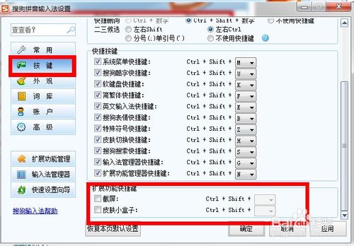 3找到最下面的扩展功能快捷键,第一项就是截屏,可以自己选择快捷键进行设置。设置完成后按快捷键可以直接截图。