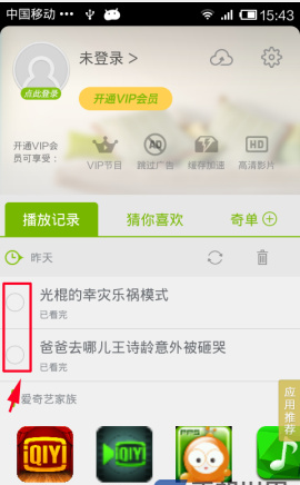 2、如果你想保留部分记录,可以点选圆圈符号,选择你要删除的播放记录