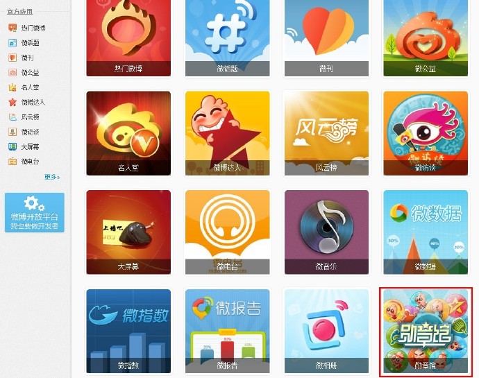 2、首页顶部点击应用进入应用广场,点击左侧官方应用,即可找到勋章馆。